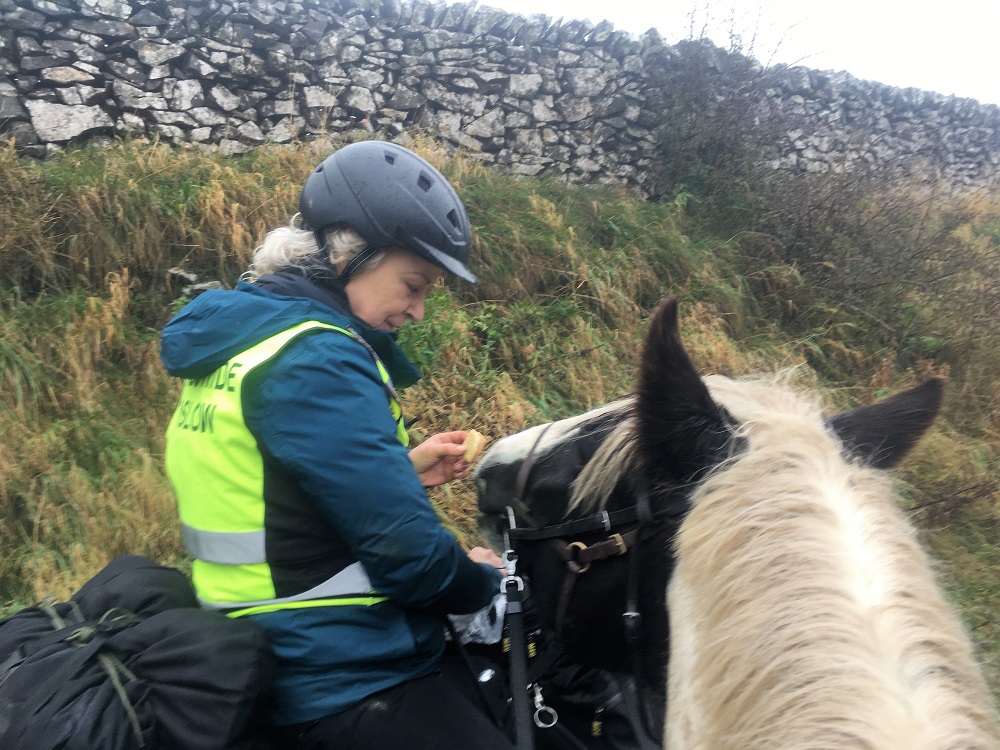 The next morning we set off again – the load a bit lighter but more work required.   It was another very long day, but on this occasion brightened by the wee incident – seeing Kat scratting around in the squat and drop position while I ‘accidentally’ stood on my reins was highly amusing.