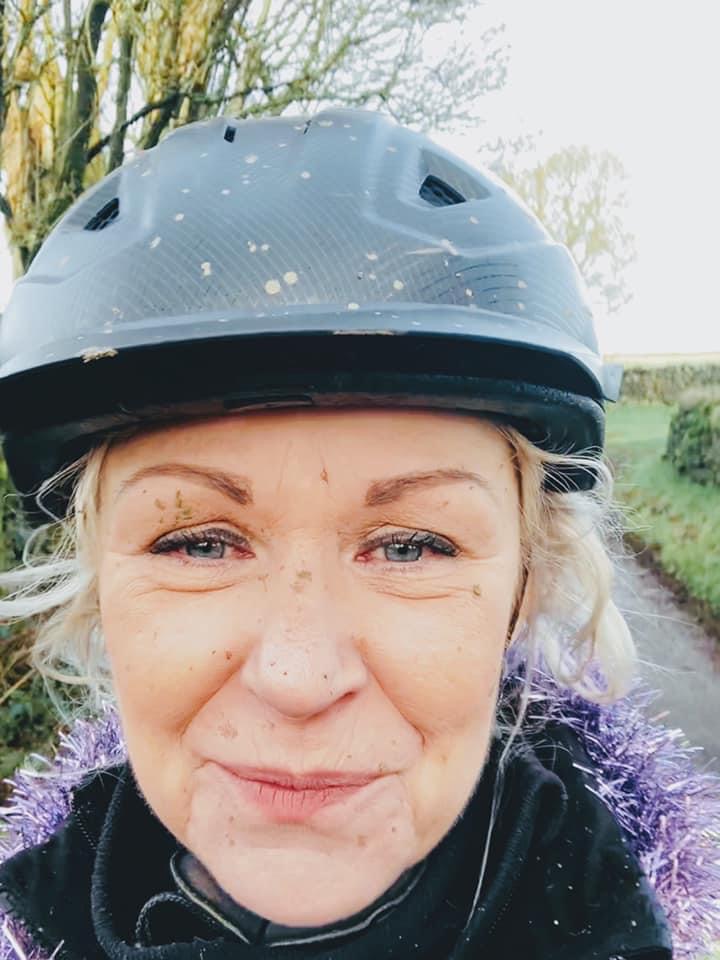 I got good and proper up Till’s bum before we set off running and she sent a wonderful wallop of splatter onto Kat’s face. I cleverly made sure my hoof boots got sucked off in the mud so we’d have to go back to the beginning of the run to find them, meaning we’d have to do the splatter dash again!! This time we agreed I’d go in front and see if we could improve the splatter count with my dinner plate feet – and we did!!